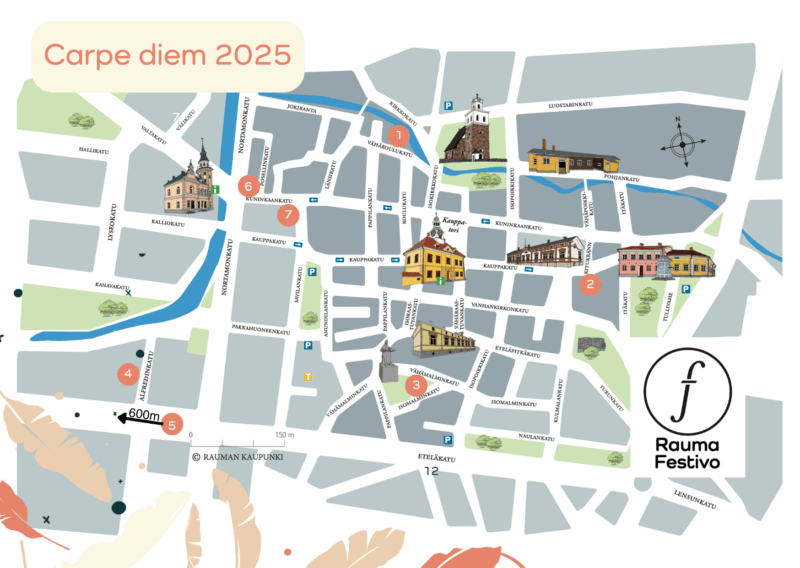 Rauman oppaat ry:n kanssa yhteistyössä toteutettu kävelykierros vie Carpe diem -kohteesta toiseen. Matkalla kuullaan tietoa ja tarinoita Vanhasta Raumasta. Maksuttomaan kierrokseen voi osallistua liittymällä joukkoon silloin kun itselle sopii.