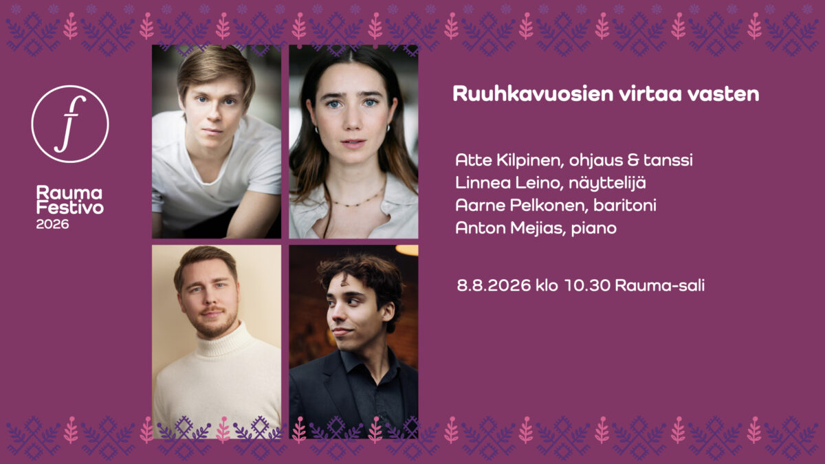 Ruuhkavuodet menossa tai sitten ei, tähän konserttiin ovat tervetulleita ihan kaikki – erityisesti he, jotka vielä harjoittelevat paikoillaan hiljaa istumista, mutta ovat valmiita lumoutumaan taiteesta yhdessä läheistensä kanssa! Rauma Festivo tarjoaa vapaan pääsyn konserttiin kaikille vuonna 2026 syntyneille vauvoille vanhempineen sekä elokuussa 2026 ekaluokan aloittaneille raumalaislapsille konserttiseuralaisineen. Ilmoittautumiset paikan varaamiseksi pyydetään osoitteeseen info@raumafestivo.fi. Lapsille tarjotaan konsertin yhteydessä myös muuta ohjattua ohjelmaa, ja konserttia voi käydä kuuntelemassa pienemmissä erissä.
